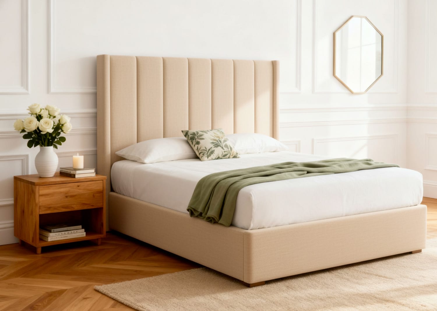 The straight winged design creates a sophisticated focal point whilst maintaining simplicity and elegance. This thoughtful construction ensures the bed frame enhances your bedroom’s aesthetic without appearing overcomplicated or ostentatious.