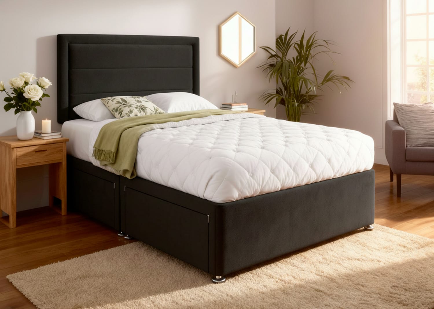 This divan bed set addresses the common challenge of bedroom storage whilst maintaining comfort and style. The integrated drawers provide a straightforward solution for keeping your space tidy and organised, eliminating the need for additional storage furniture.