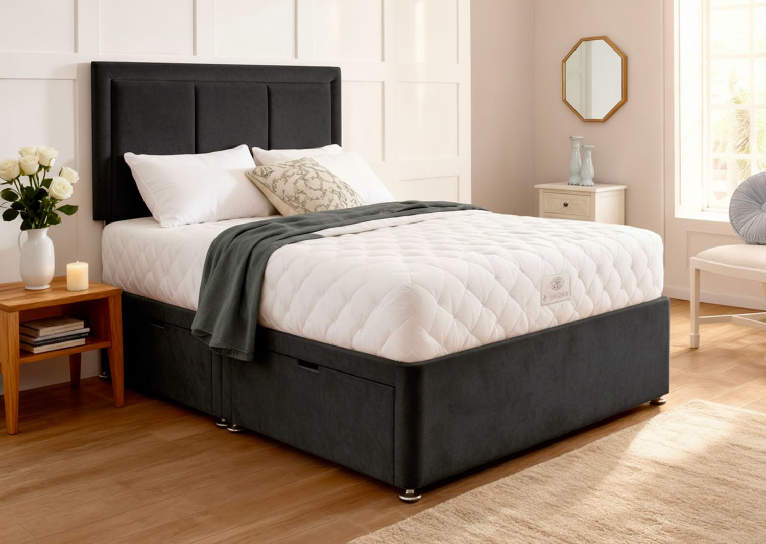 The Mayfair Luxe Divan Bed Set combines practical storage solutions with elegant design, offering the perfect balance of form and function for the modern home.