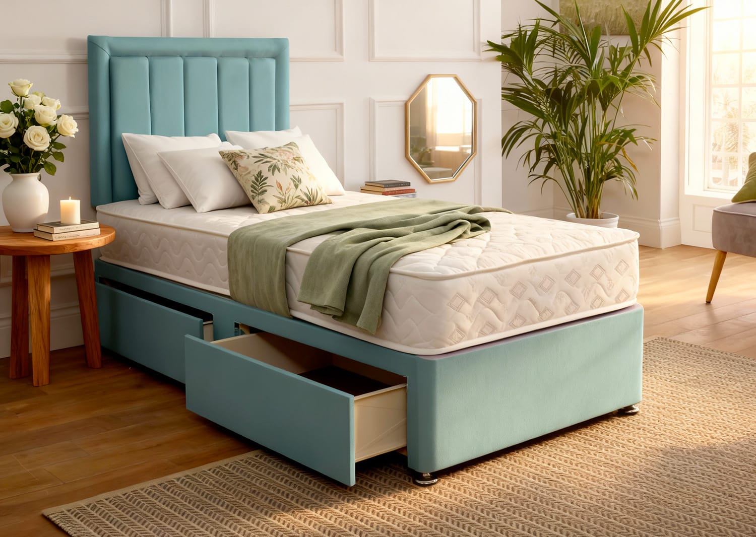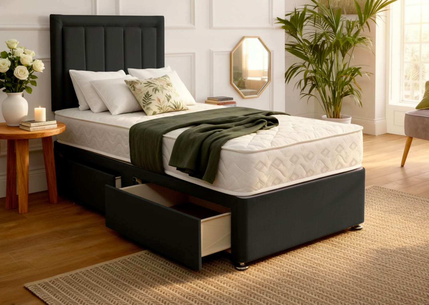 Looking for more options? Browse our wide range of divan beds, ottoman storage beds, classic bed frames and divan ottomans. Whether you need extra storage, a stylish frame or a complete divan set, you’ll find affordable beds at our factory-direct prices.