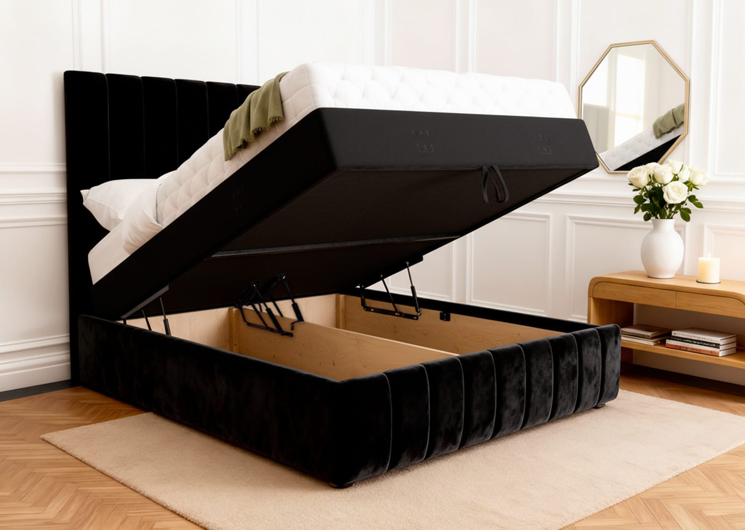 Perfect for: Modern homeowners seeking furniture-quality bedroom pieces that combine style with practicality. Ideal for master bedrooms, guest rooms, or any space where under-bed storage transforms clutter into organised convenience.