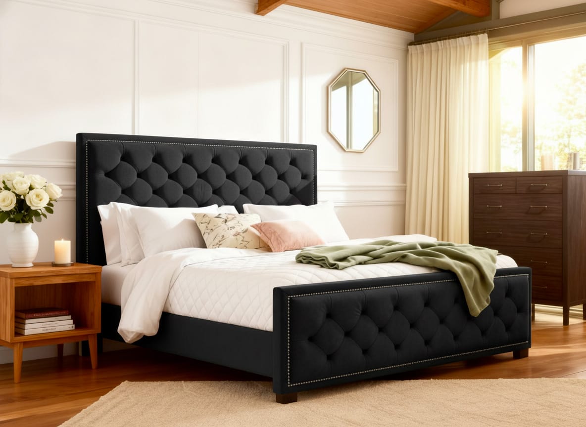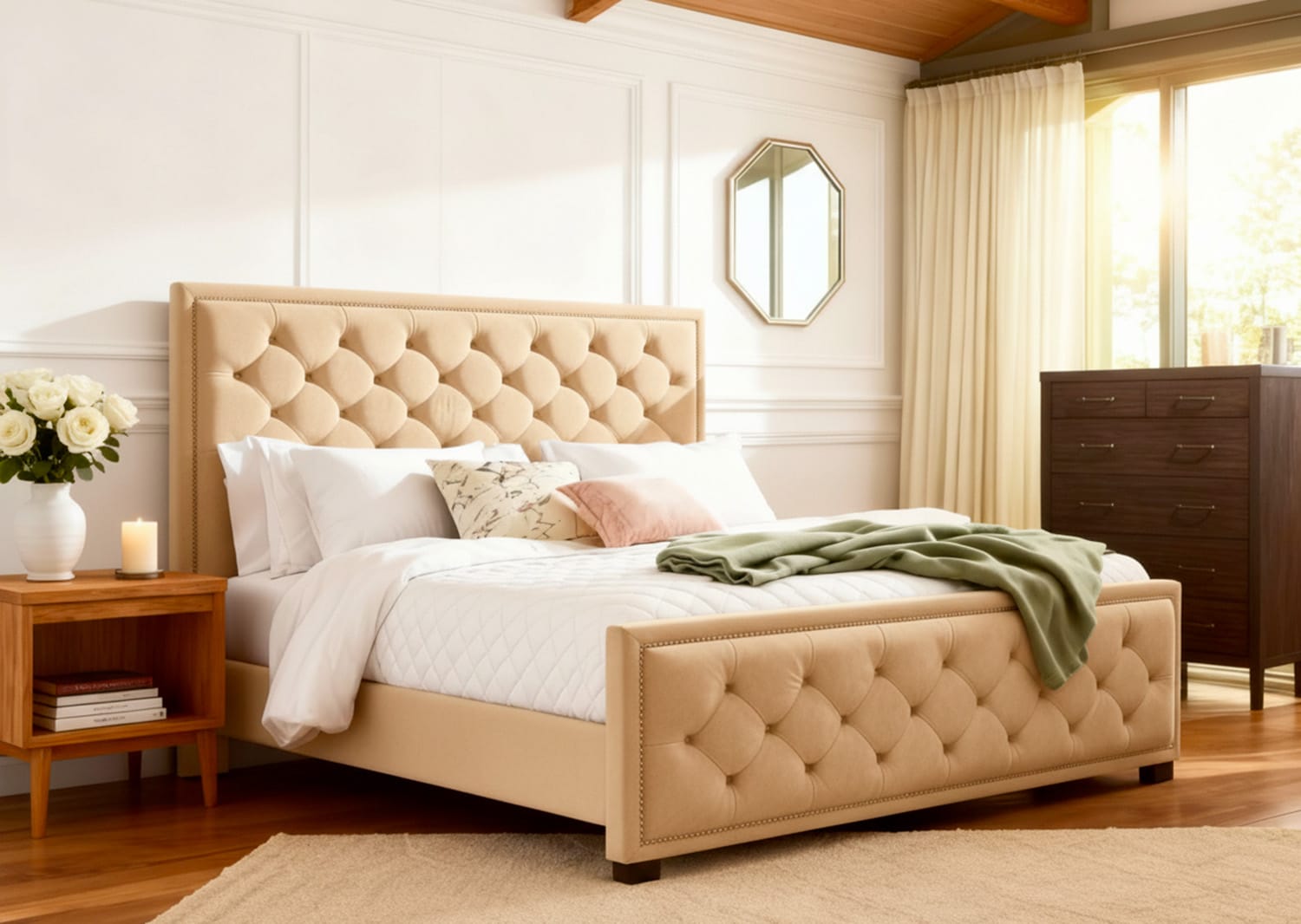 Perfect for creating a sophisticated bedroom retreat that combines comfort, storage, and timeless appeal.