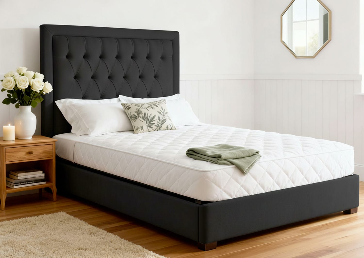 Customisable Upholstered Finish Available in an extensive selection of premium fabrics and colours, allowing you to perfectly match your existing décor. The distinctive deep-buttoned headboard creates a refined focal point whilst offering adjustable height options to suit your space requirements.