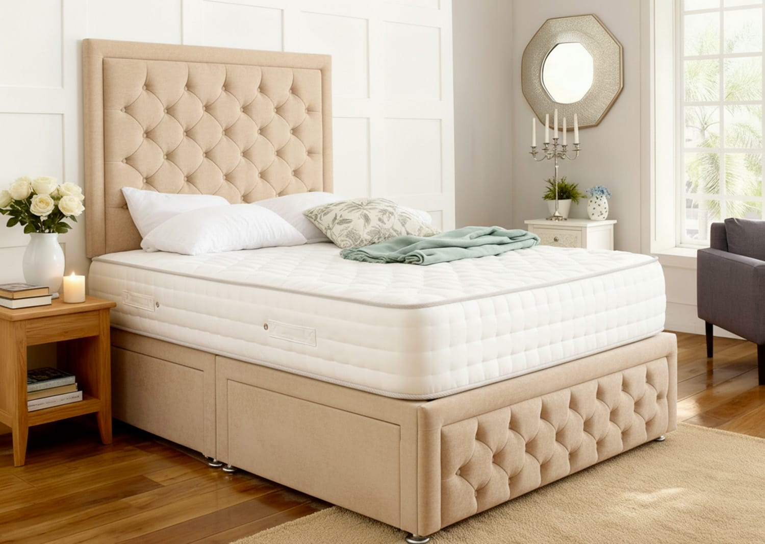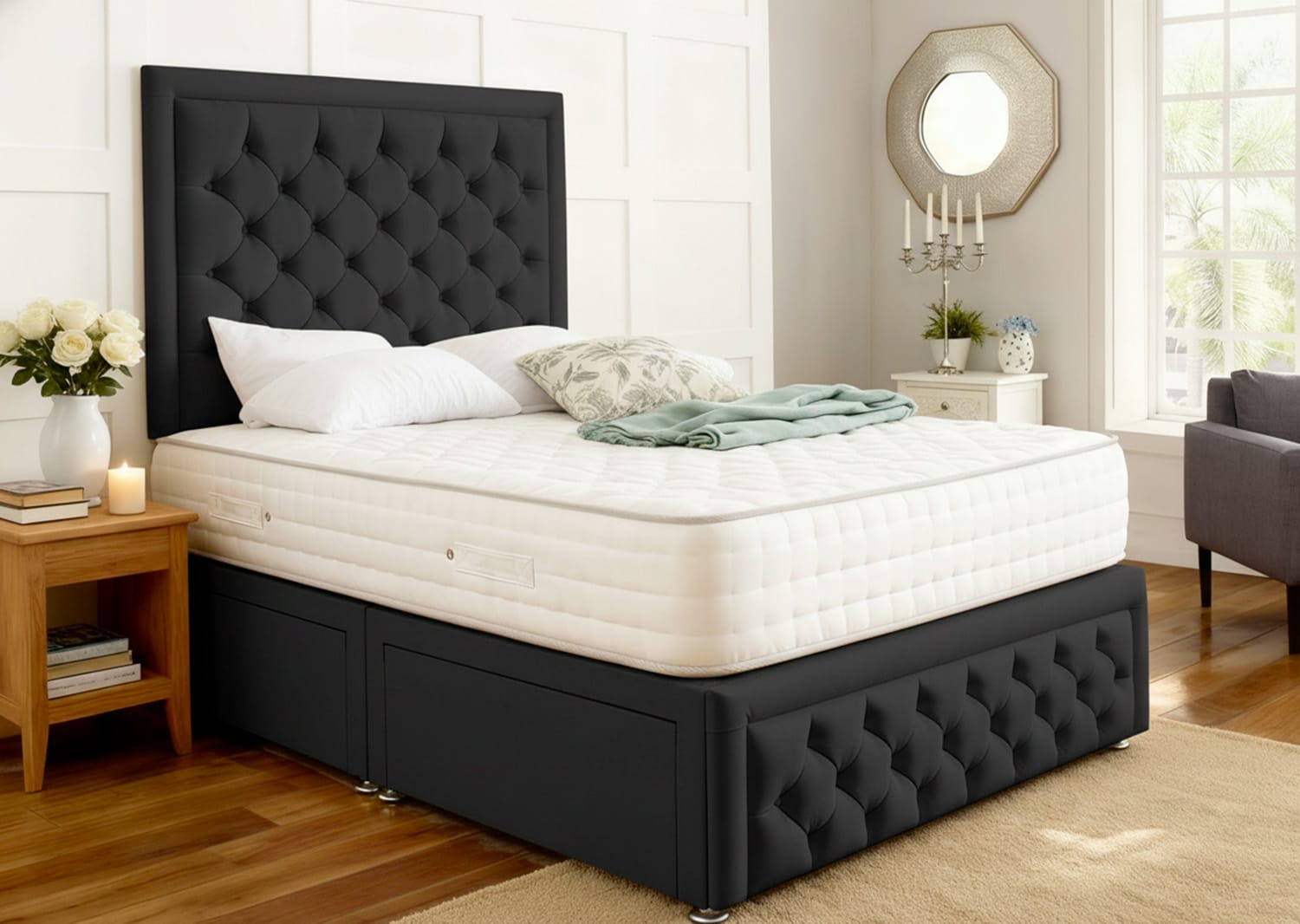 Suitable for all ages, this luxury divan bed appeals to anyone seeking sophisticated bedroom furniture that doesn’t compromise on practicality. The grand design makes it ideal for master bedrooms, guest rooms, or any space requiring a statement piece.