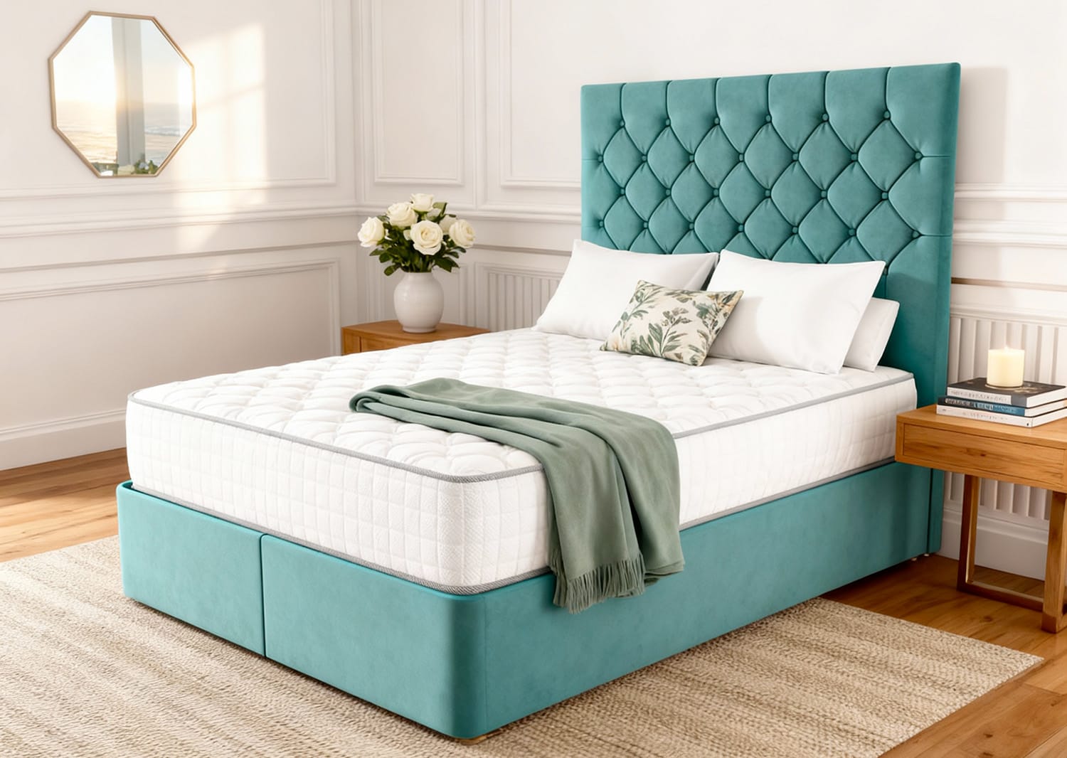 This ottoman divan bed delivers more than just sleep support – it’s a statement piece that combines beauty, functionality, and British craftsmanship. The rich emerald colour and deep button detailing transform your bedroom into a boutique hotel-inspired sanctuary whilst the clever storage keeps your space organised and clutter-free.