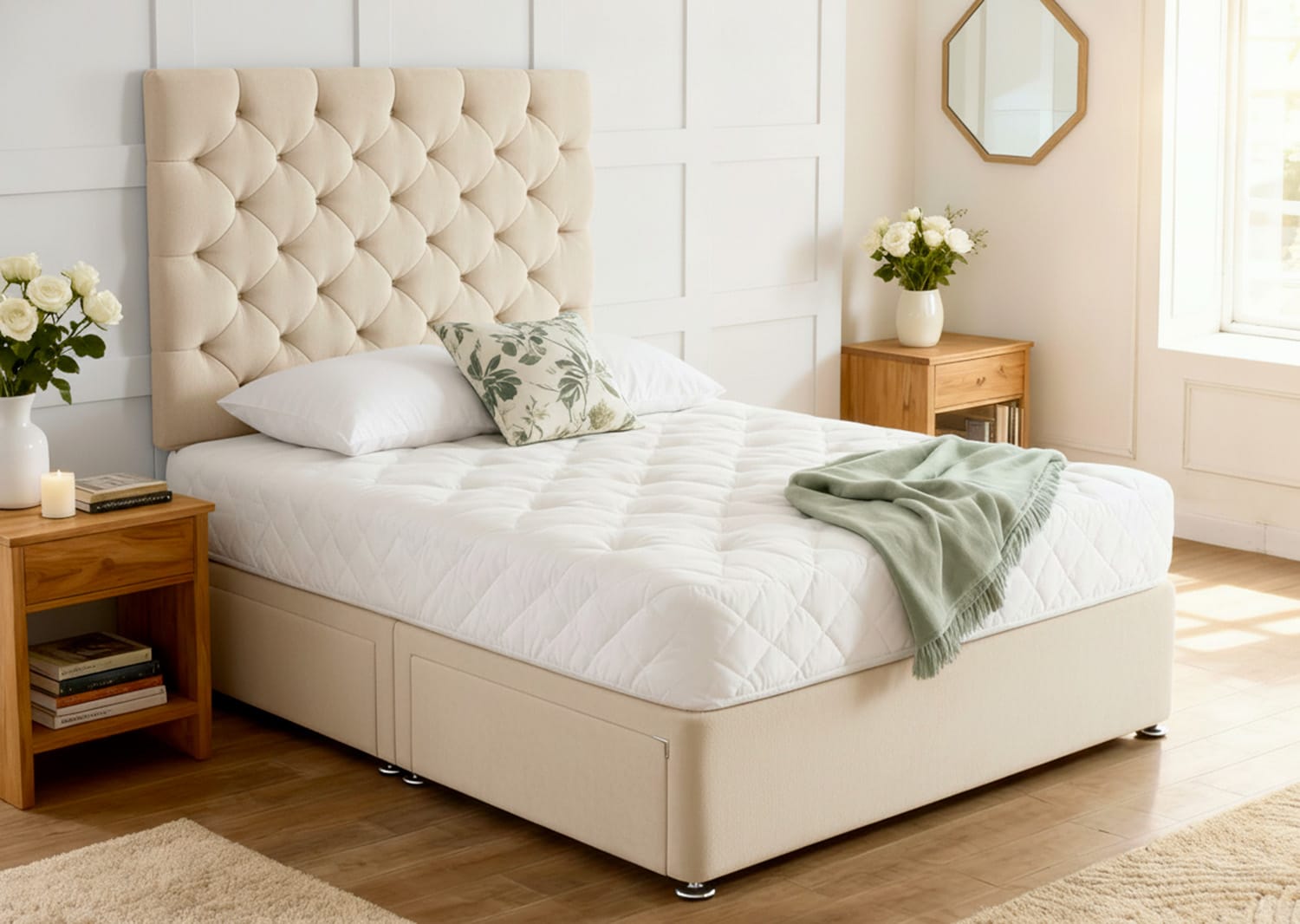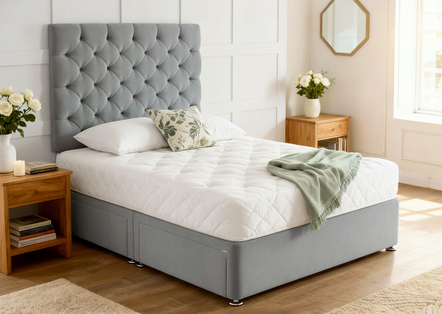 Experience the perfect balance of luxury, practicality, and timeless design with the Foxhills Divan Bed & Mattress Set.